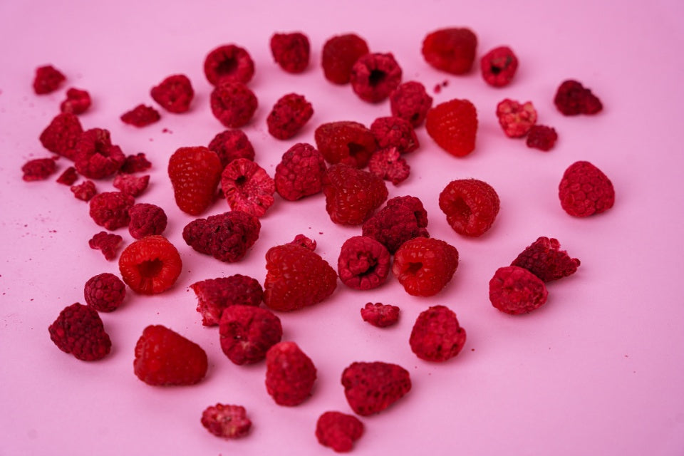 Sezon na nie trwa zbyt krótko, by się nimi nacieszyć, dlatego proponujemy maliny liofilizowane – dostępne przez cały rok i cudownie chrrrupkie! Świeże maliny w 85% składają się z wody, dlatego po liofilizacji kilograma owoców zostaje tylko 100 g suszonych, które zachowują wszystkie wartości odżywcze.
